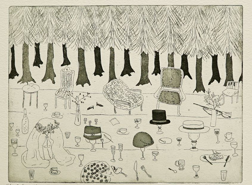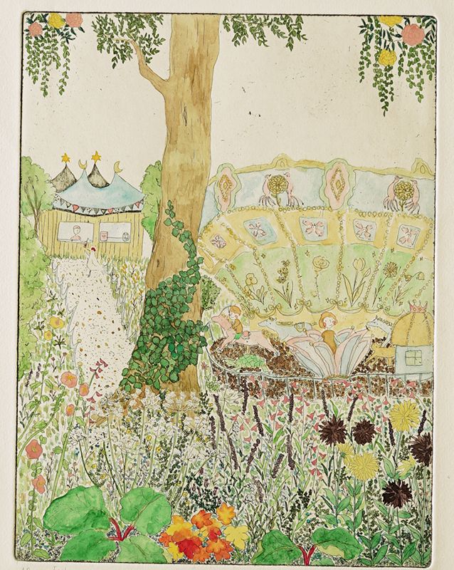 etching, hand colored エッチング、手彩色